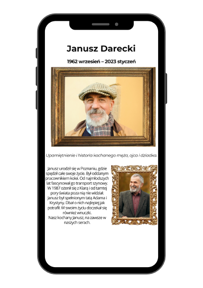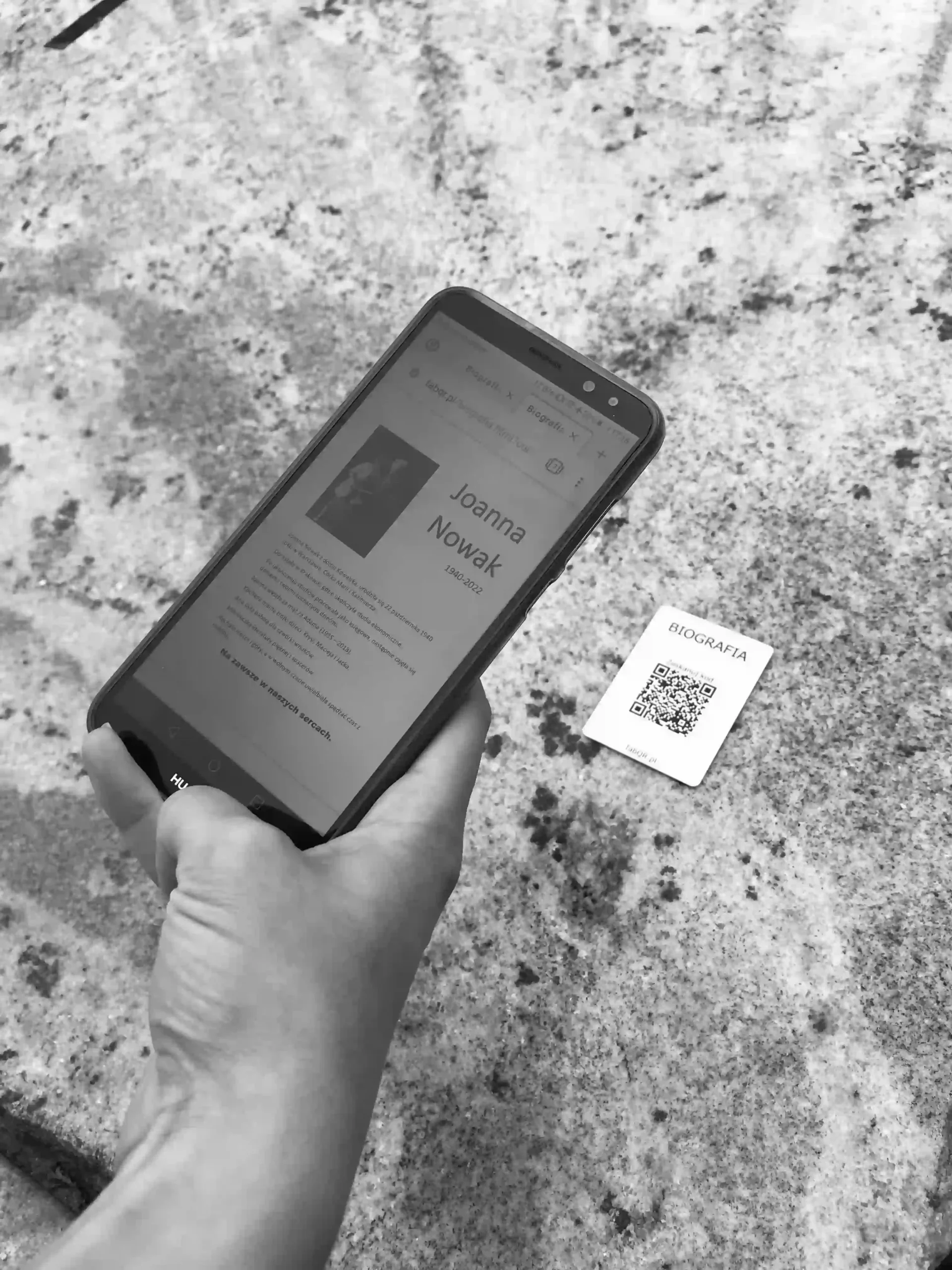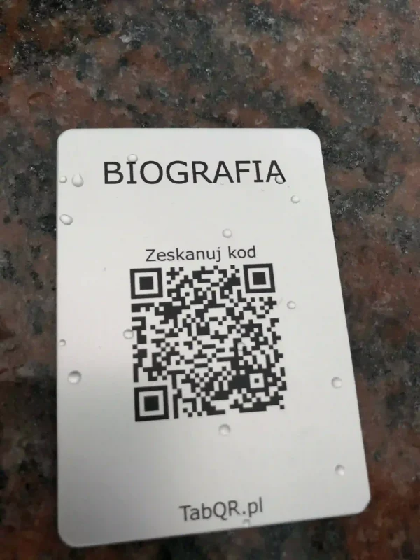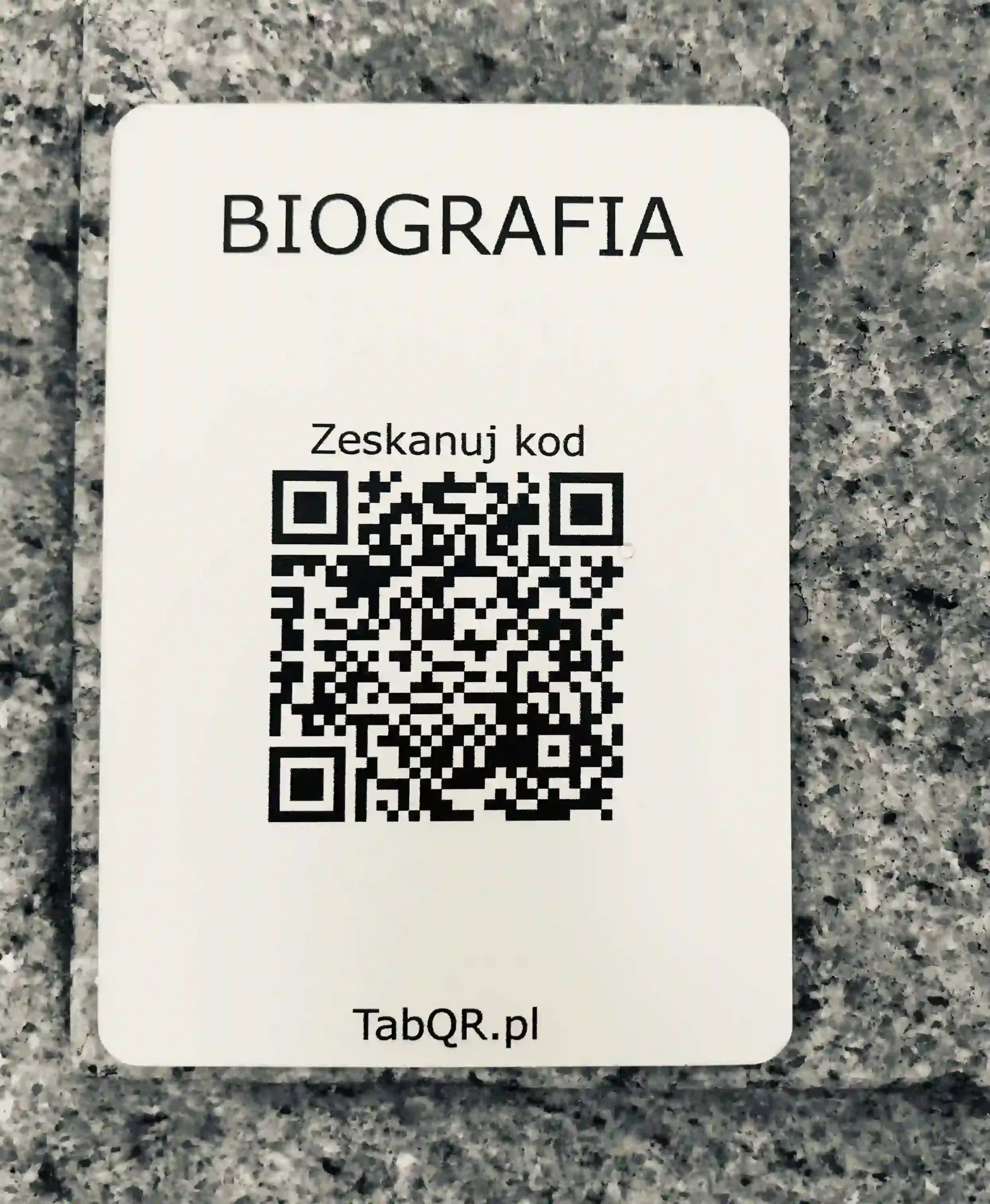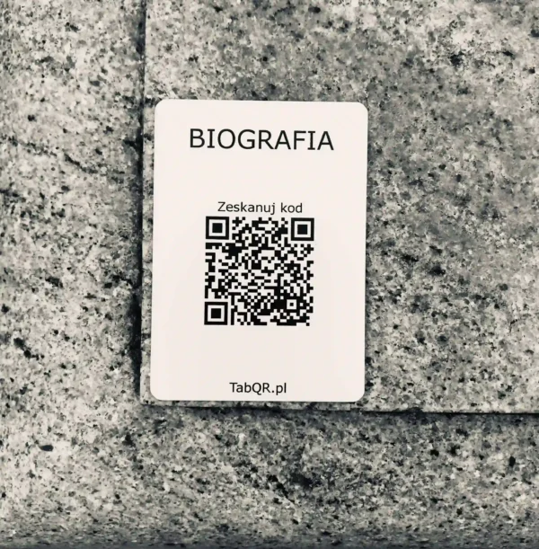 Tabliczka TabQR to nowoczesny sposób na upamiętnienie bliskiej osoby. Po zeskanowaniu kodu QR, odwiedzający mogą zobaczyć stworzoną przez Ciebie biografię z opisem życia i wybranymi zdjęciami – bez potrzeby logowania czy instalowania aplikacji.